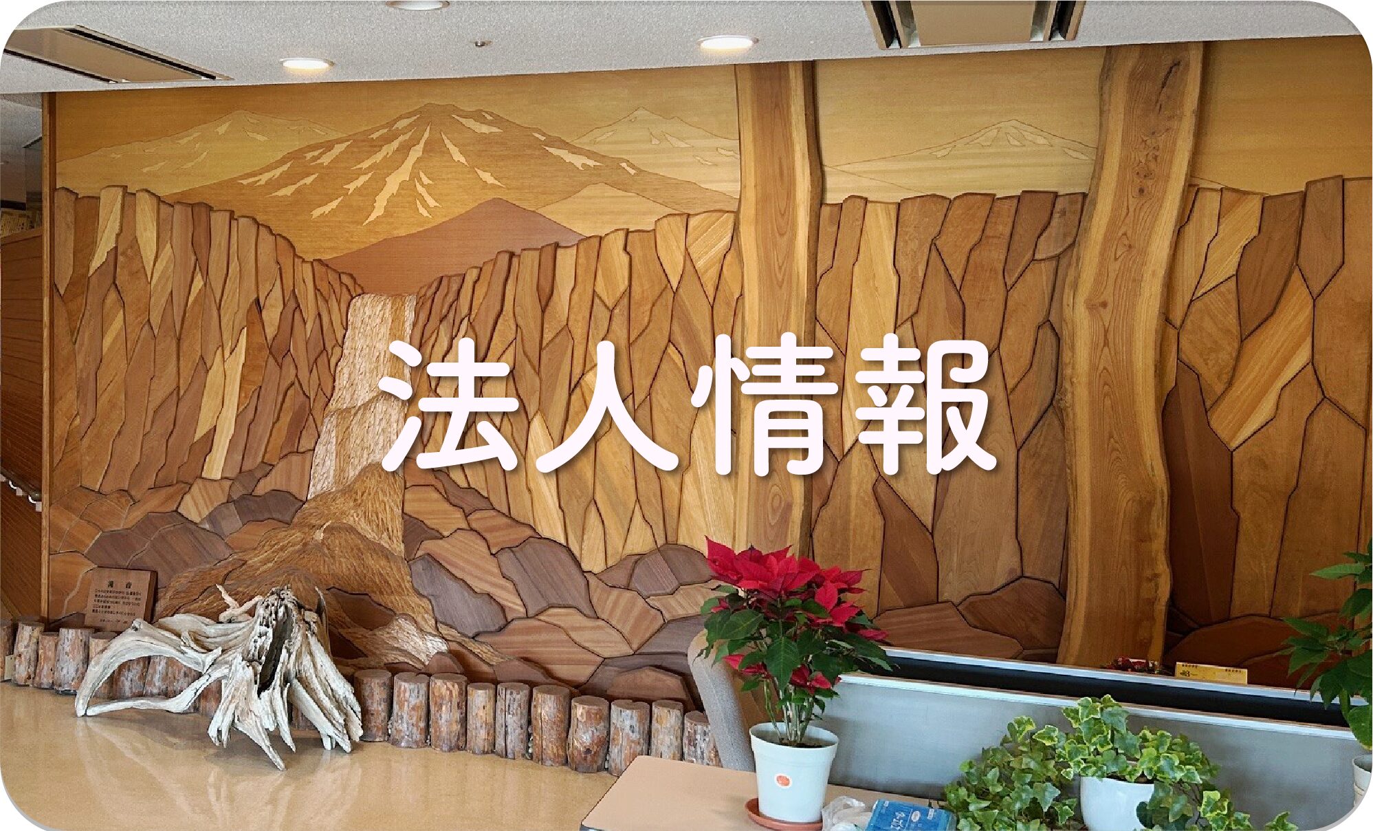 ロゴマークの「赤色は介護の熱意、緑色は清潔・安心感」がデザインされ、法人の願いが込められています。